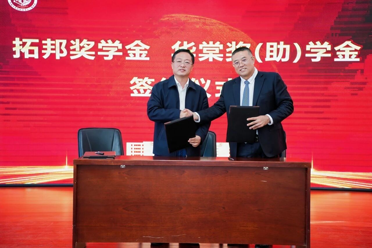 会上,美高梅mgm最新登录入口校友和基金会工作办公室主任康永刚与绍兴市铂兴科技有限公司、1997级校友王秀平签署华棠奖助学金协议。张立军与江苏拓邦华创科技有限公司董事长、2001级校友赵慧宇签署拓邦奖学金协议。